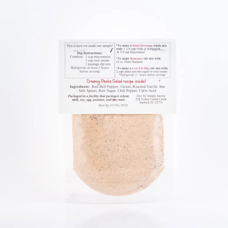 This rich, creamy dip is made with roasted garlic, onion, and sweet red bell peppers. Perfect as a creamy dip or as an addition to hummus! Includes a recipe for Creamy Pasta Salad.