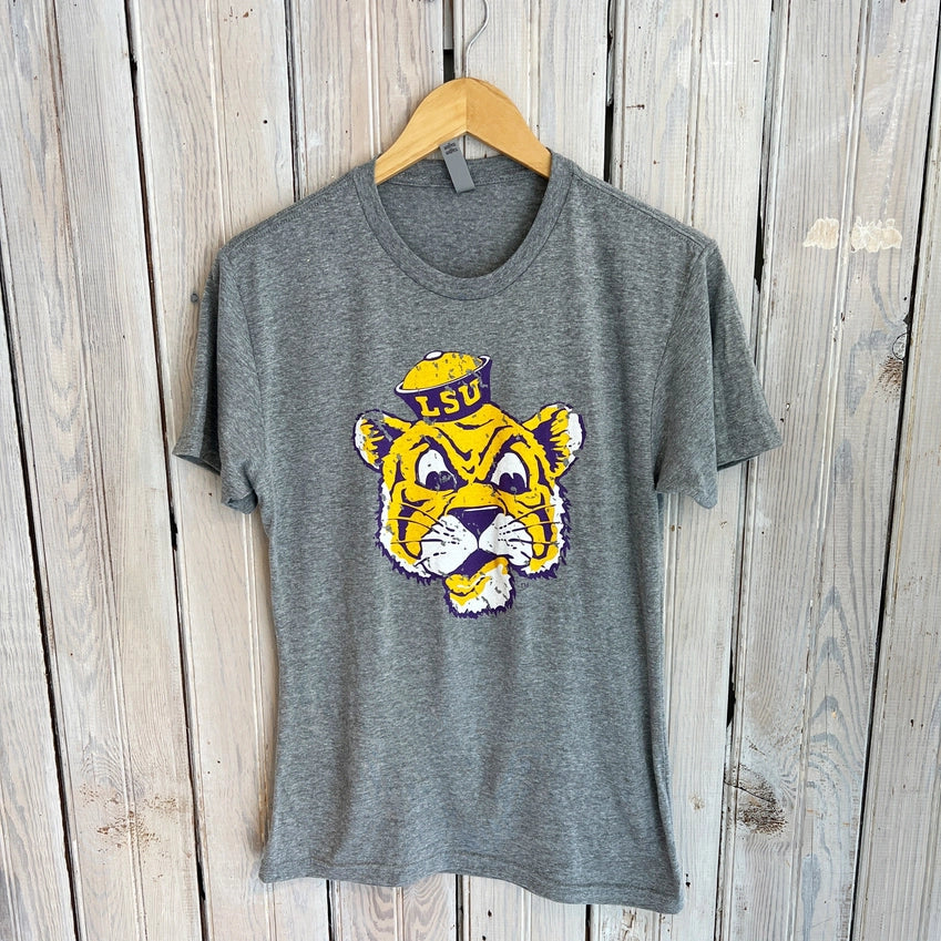 Features the iconic retro LSU Tiger graphic in bold purple and gold—show your Tiger spirit with timeless style.
